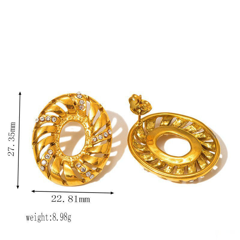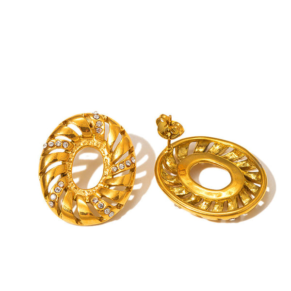 Enhance your elegance with our 18K Gold Court Hollow Oval Diamond Stud Earrings. These stunning earrings feature an intricate hollow-centered oval design adorned with a sparkling diamond accent, inspired by vintage court jewelry. Crafted from premium stainless steel with 18K Gold plating, these earrings offer a luxurious shine and are hypoallergenic, making them ideal for sensitive skin.