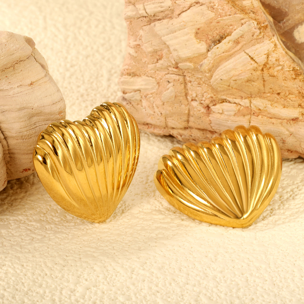 Showcase your love and style with our Striped Heart Stud Earrings. These heart-shaped earrings feature elegant vertical stripes that add depth and texture to the design. Crafted from premium stainless steel and plated in 18K Gold or Rose Gold, they are a perfect symbol of affection and romance. Hypoallergenic and lightweight, these earrings offer comfort and a secure fit for everyday wear.