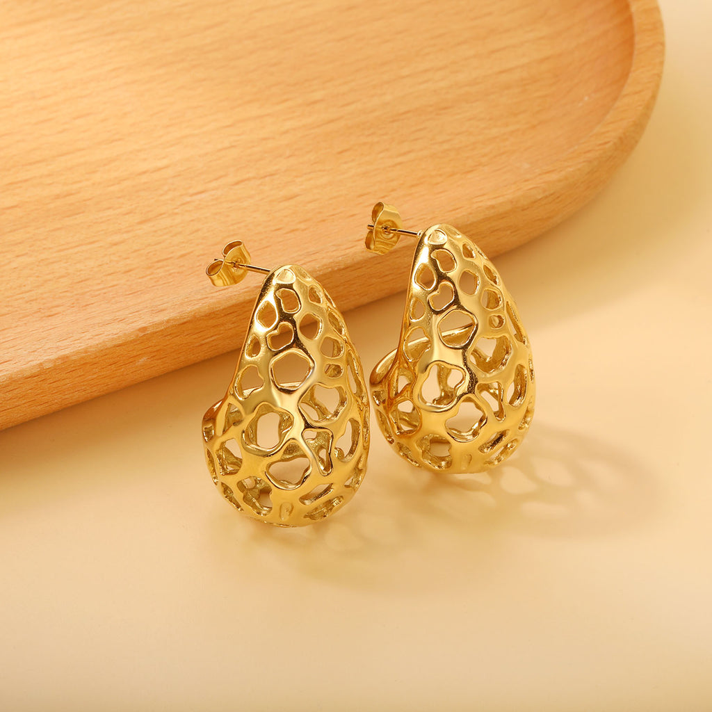 Make a bold statement with our Irregular Cutout Teardrop Earrings. These unique earrings feature a modern teardrop shape with artistic, irregular cutouts that create an eye-catching design. Crafted from high-quality stainless steel and plated in 18K Gold, they add a contemporary edge to any outfit while being hypoallergenic, making them perfect for sensitive skin.